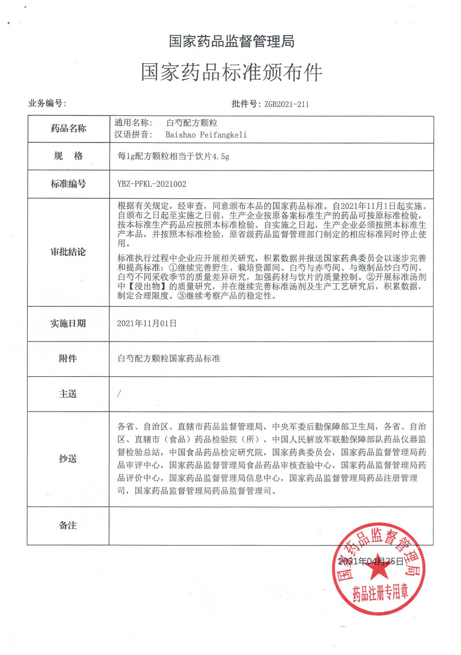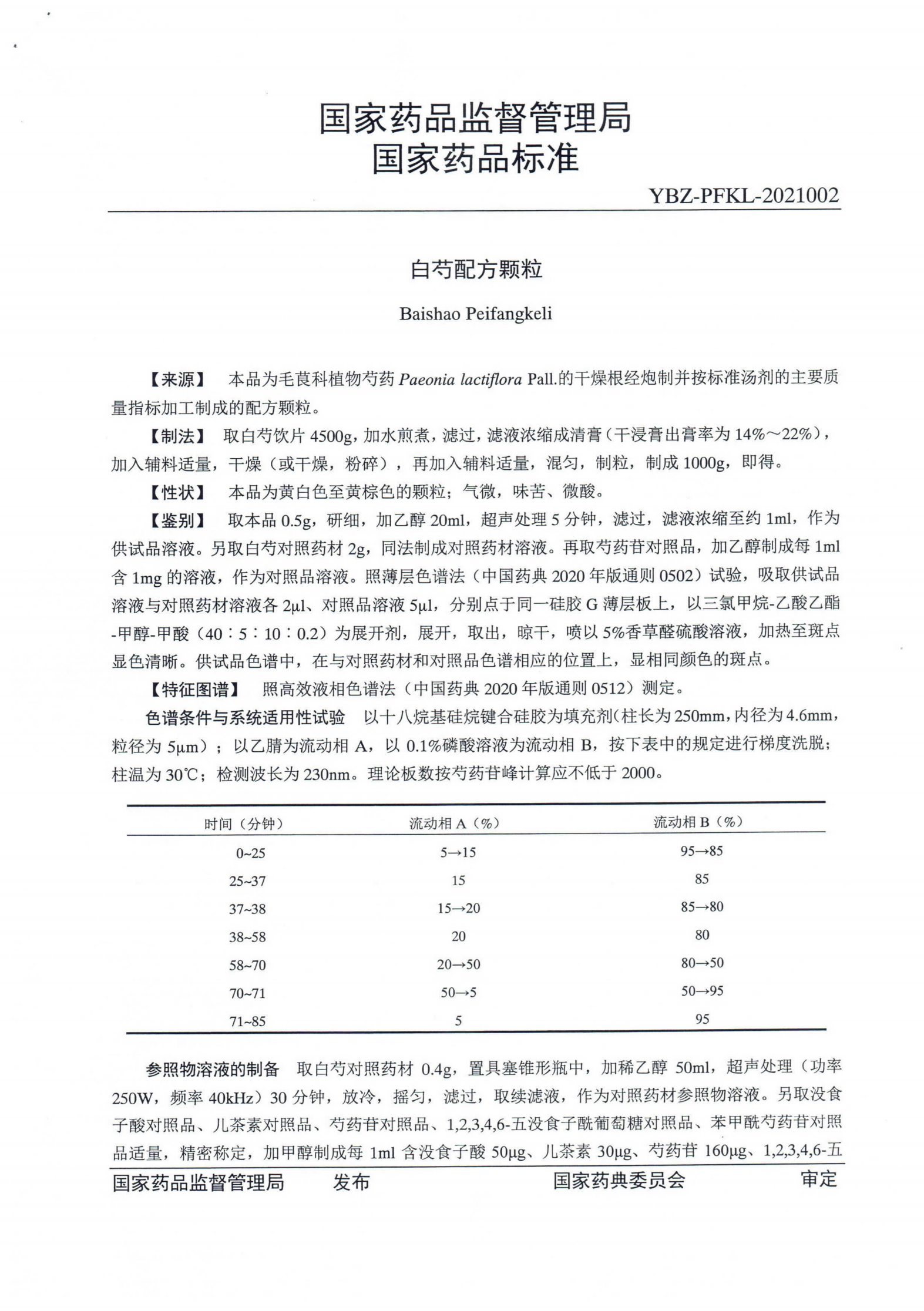国家药品标准 | 白芍配方颗粒 YBZ-PFKL-2021002