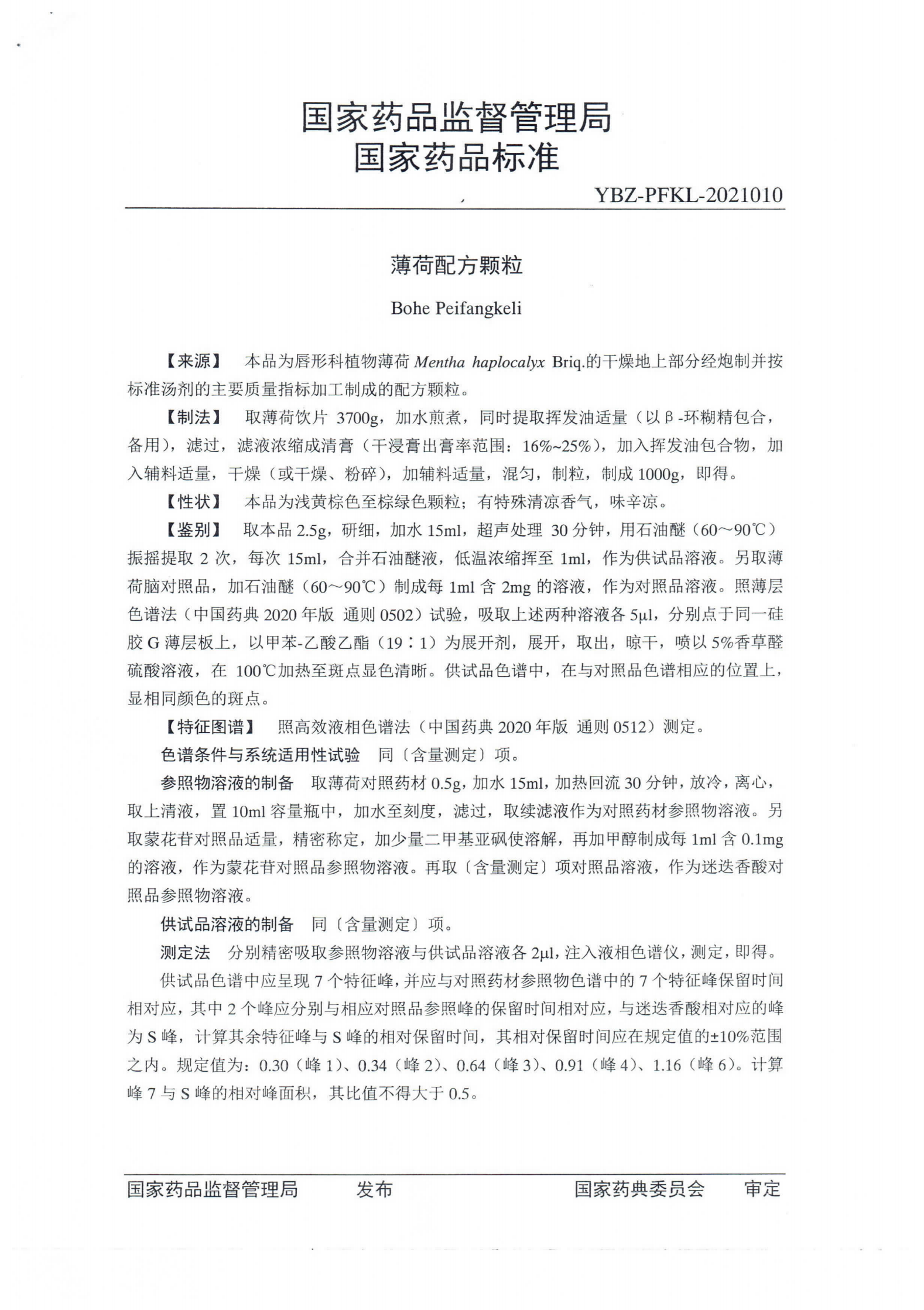 薄荷配方颗粒 YBZ-PFKL-2021010.pdf