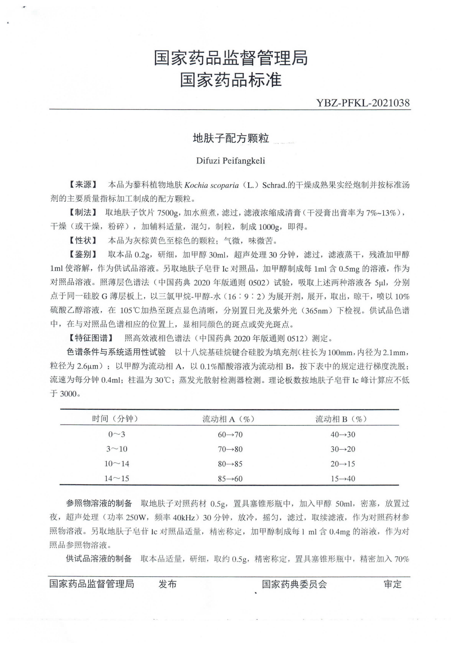 国家药品标准 | 地肤子配方颗粒 YBZ-PFKL-2021038