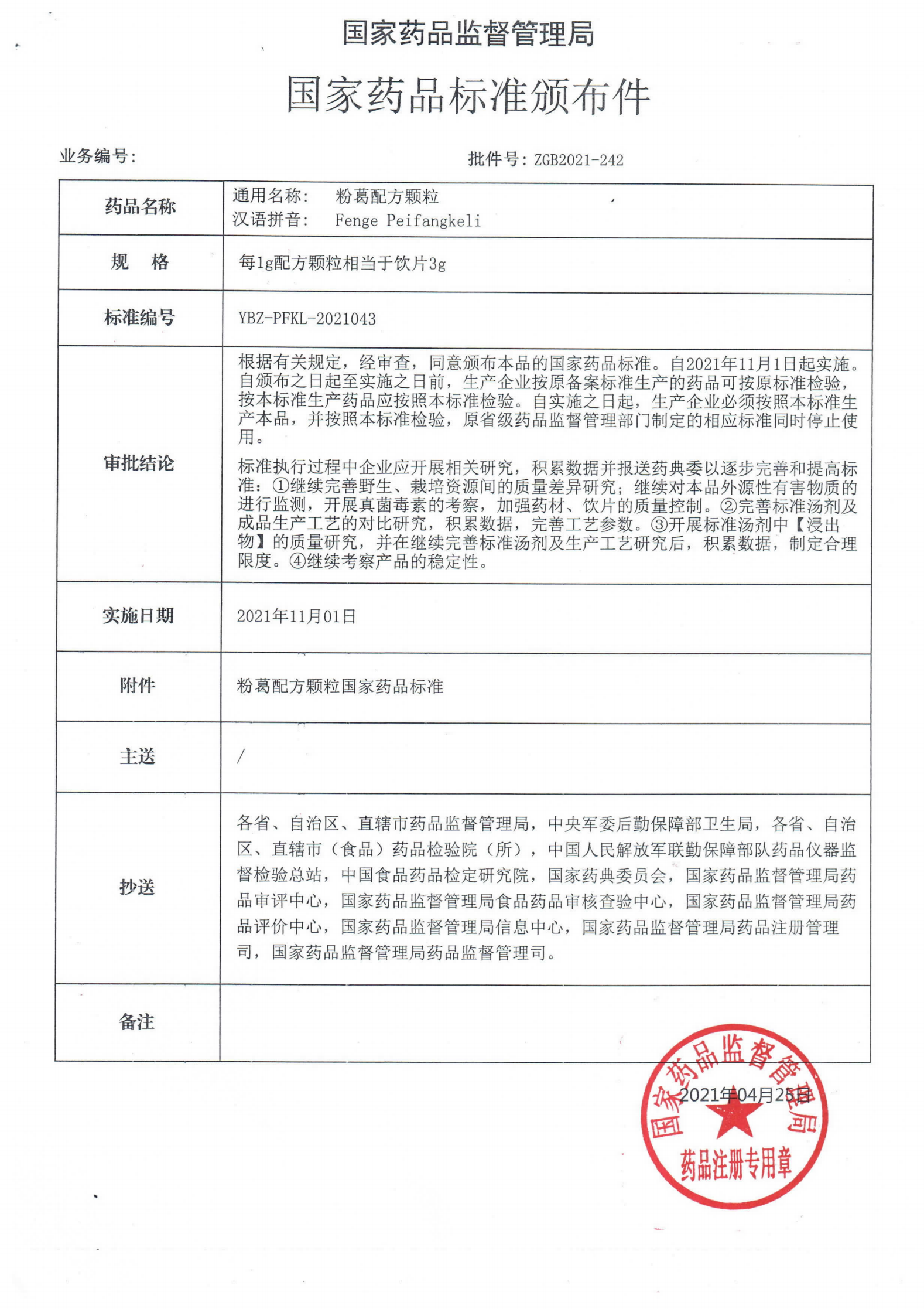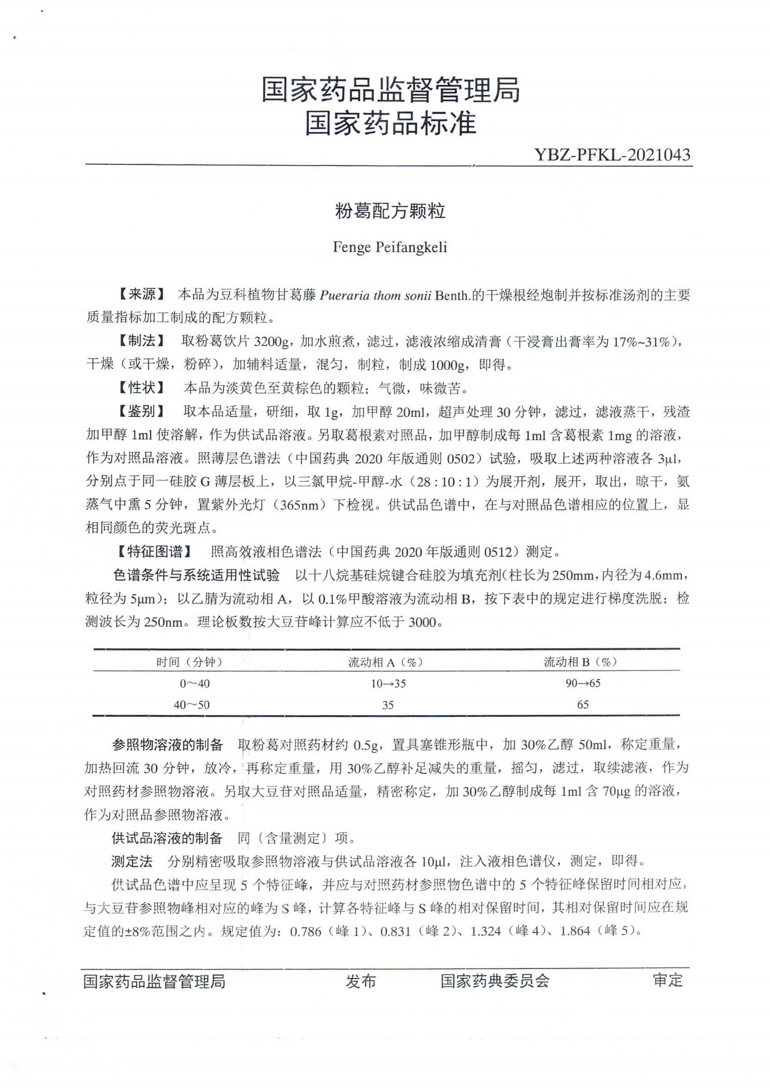 国家药品标准 | 粉葛配方颗粒 YBZ-PFKL-2021043