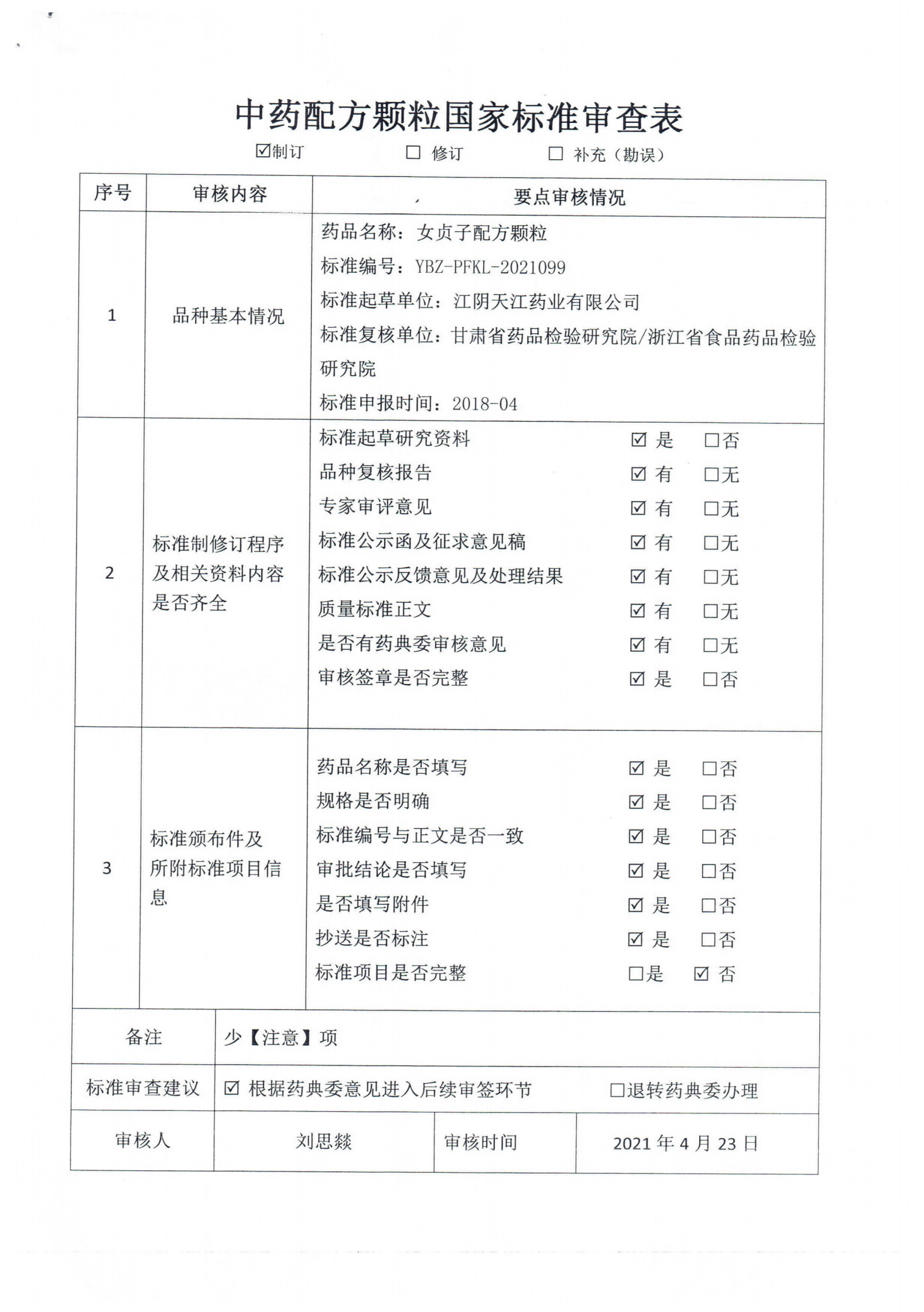 国家药品标准 | 女贞子配方颗粒 YBZ-PFKL-2021099