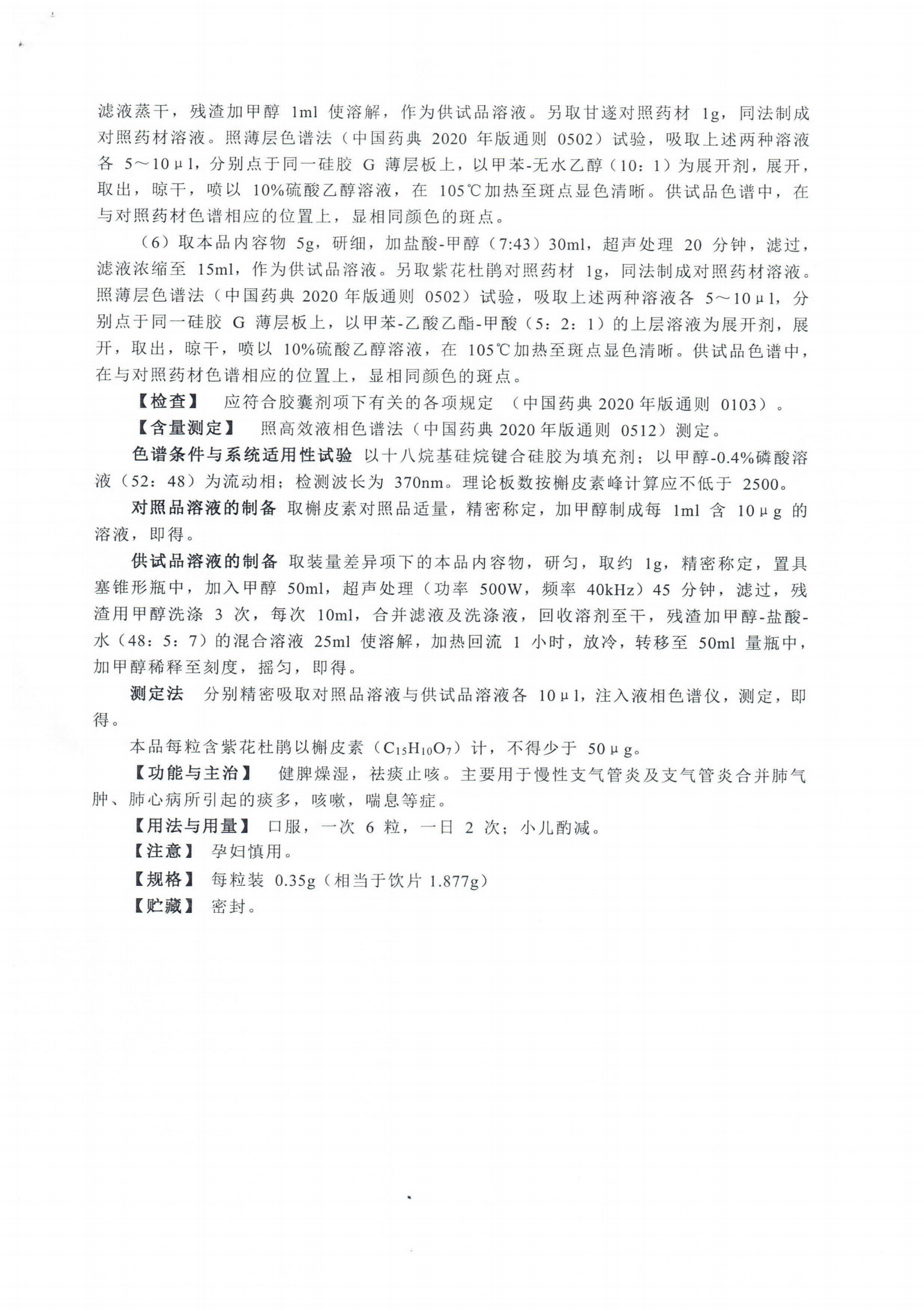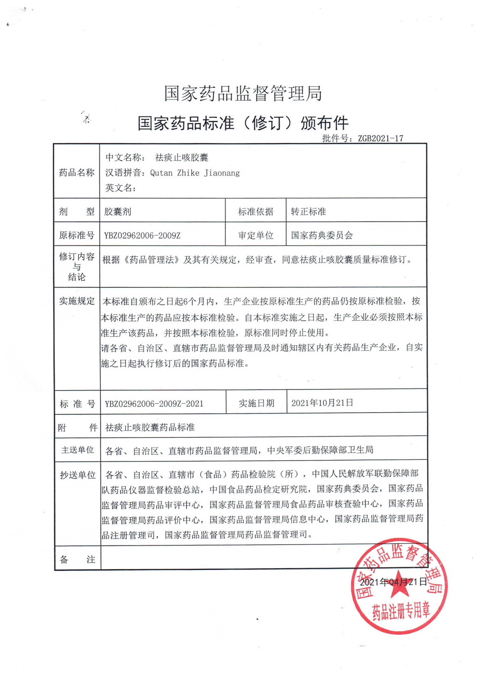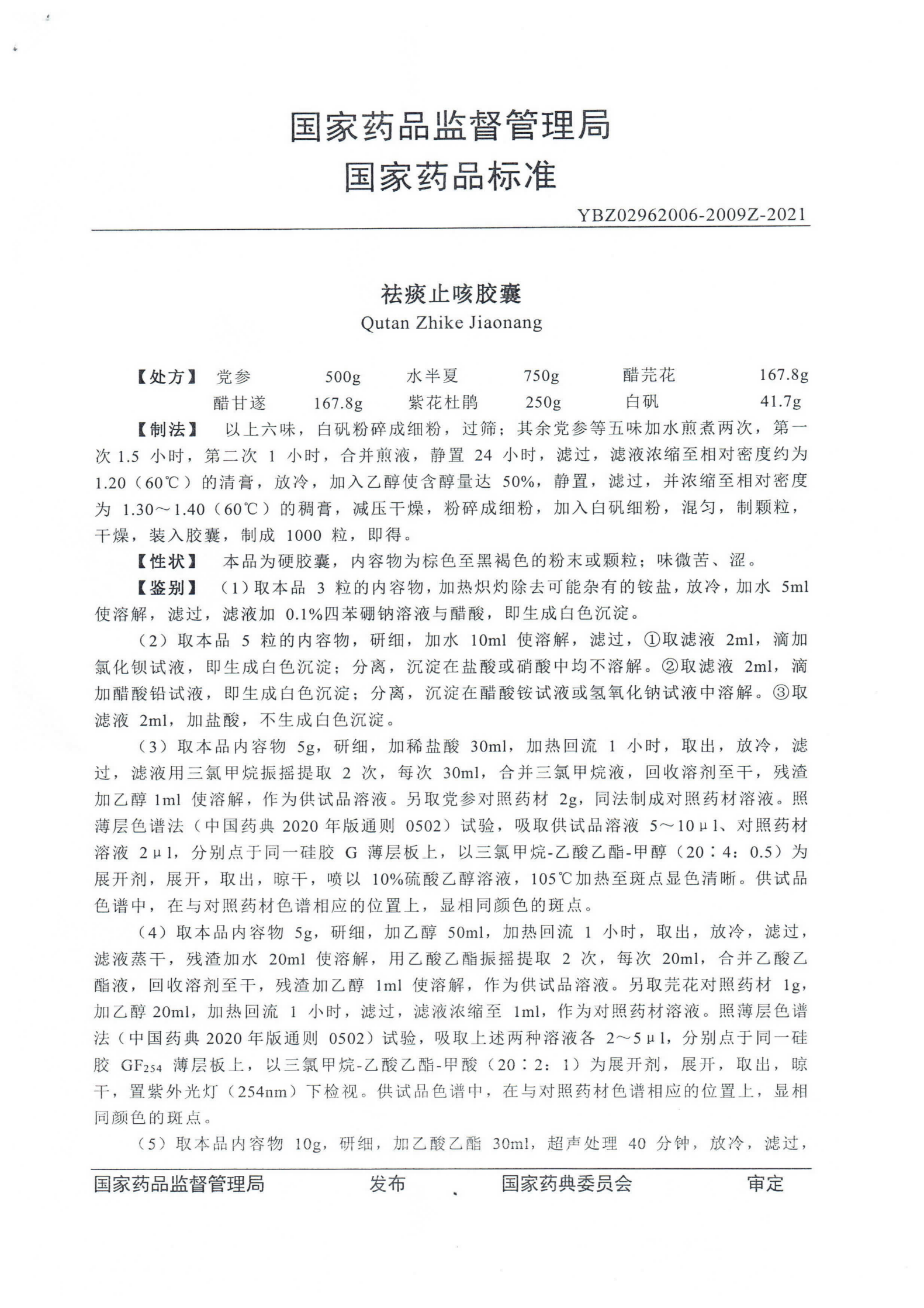 国家药品标准 | 祛痰止咳胶囊 YBZ02962006-2009Z-2021