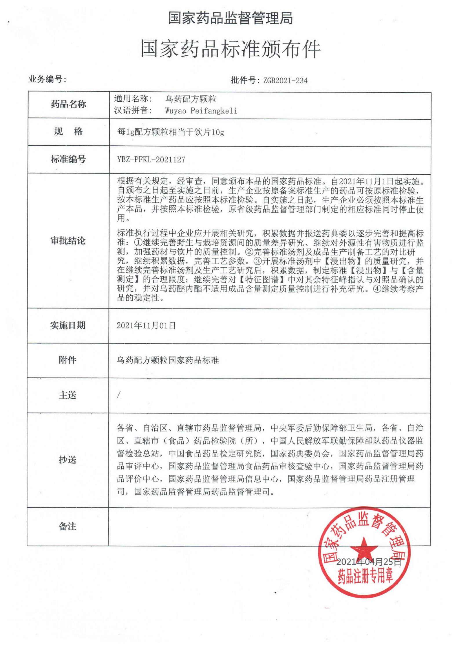 国家药品标准 | 乌药配方颗粒 YBZ-PFKL-2021127