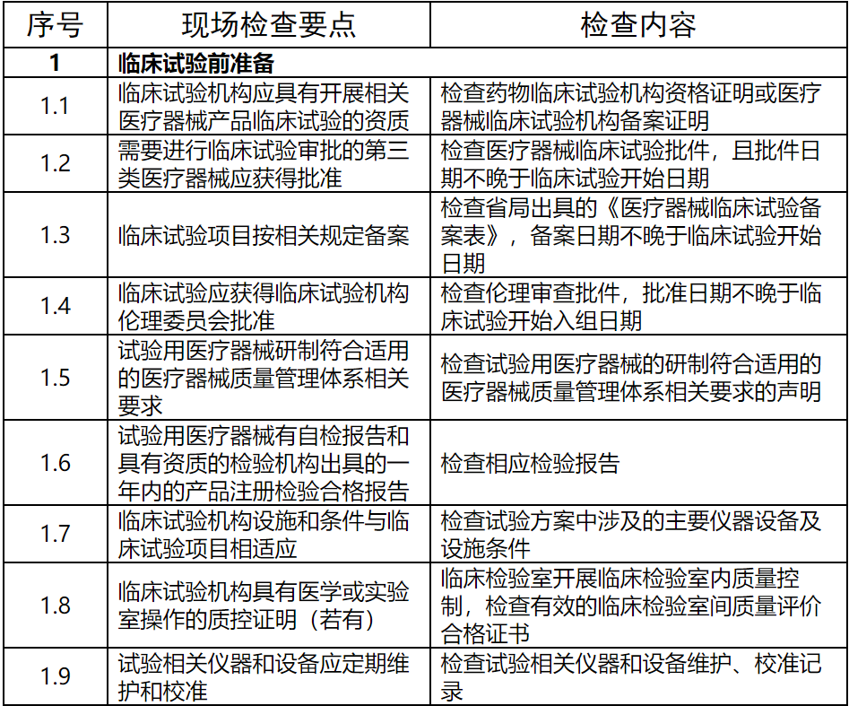 医疗器械临床试验检查要点及判定原则